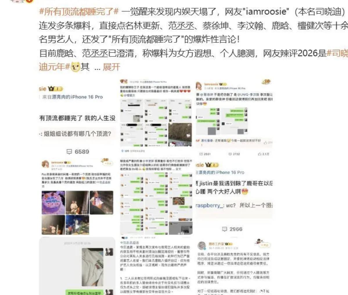 社交平台一纸封禁令,直接掐断她的发声渠道——理由很硬:恶意造谣。这事闹得不小,十几位男艺人被卷进来,从李汶翰到鹿晗,个个发声明、甩律师函,可她偏不认怂,还放话“30岁睡遍顶流”,火药味十足。 但网友不是傻子。粉丝们火眼金睛,很快扒出所谓“实锤”全是漏洞:床照光影不对、枕头没压痕,明显是AI合成;聊天记录要么删减,要么语焉不详,根本撑不起那些爆炸性指控。更别说她早有碰瓷前科,这次不过是故技重施罢了。